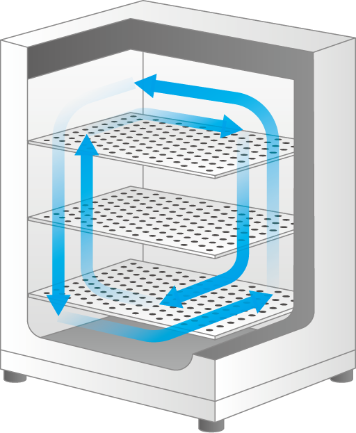 培养箱配有风扇辅助气流循环,能够实现快速复原和严格的一致性。我们的气流模式是为使一些关键环境条件均匀分布(温度,气体交换和湿度)而专门设计的。腔体内置风扇能够温和地在整个腔体内吹动经过滤的潮湿空气,保证所有细胞无论放置在什么位置,培养环境条件都相同并且不会过度失水。